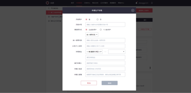 “申請接入”確認(rèn)后,填寫相關(guān)信息。