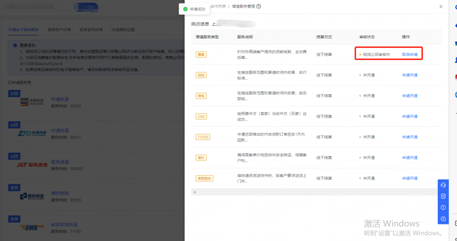 審核通過的網(wǎng)點(diǎn)可以開通快遞公司的增值服務(wù)