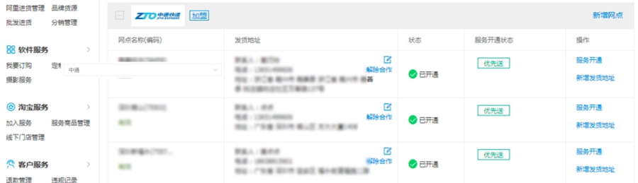 1?? 篩選狀態(tài)為已開通的網(wǎng)點(diǎn),點(diǎn)擊【服務(wù)開通】