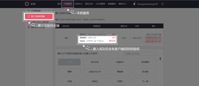 接入成功后會(huì)系統(tǒng)將會(huì)生成客戶編碼和校驗(yàn)碼,用于添加模板時(shí)使用。