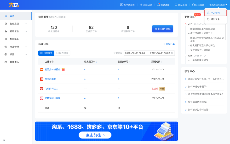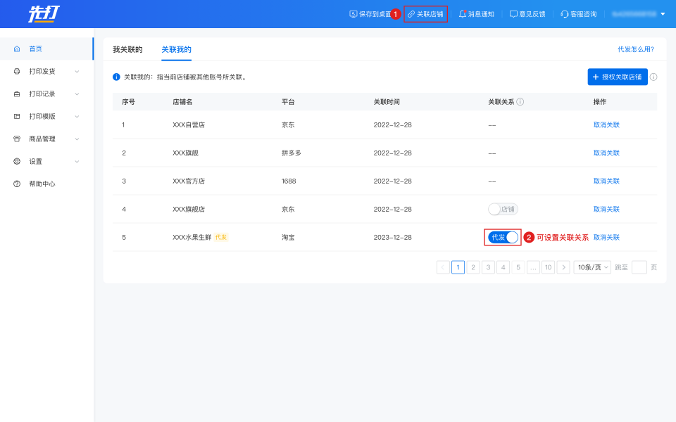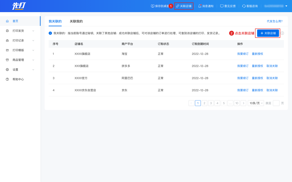 ? 目的:用于共享電子面單,便于一個(gè)主賬號(hào)統(tǒng)一管理多平臺(tái)多店鋪