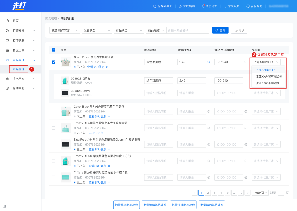 2?? 進(jìn)入商品管理 ?? 選擇需要代發(fā)的商品 ?? 將其設(shè)置為對應(yīng)的代發(fā)商即可。