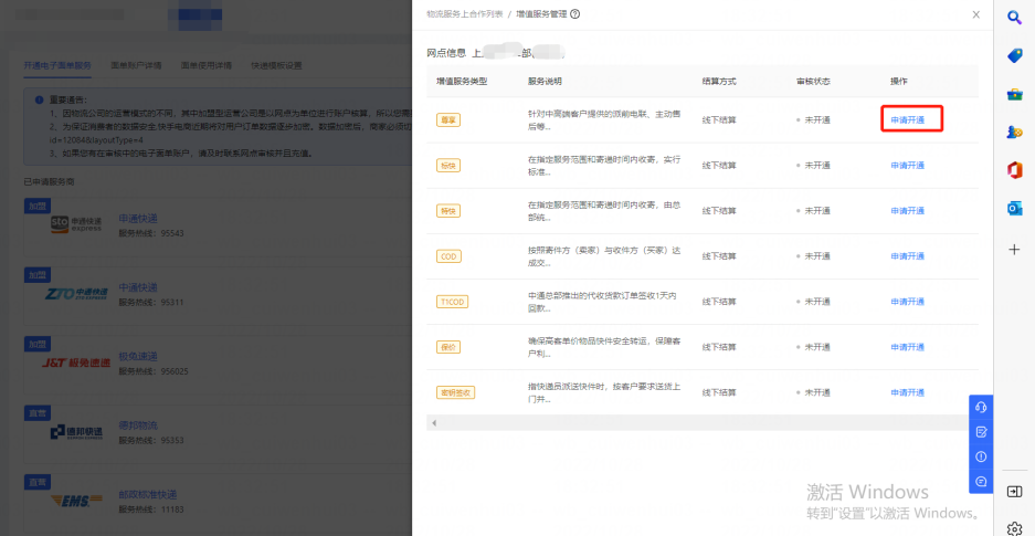 注:目前只有中通、圓通、極兔支持線上申請,其他快遞公司需要線下申請