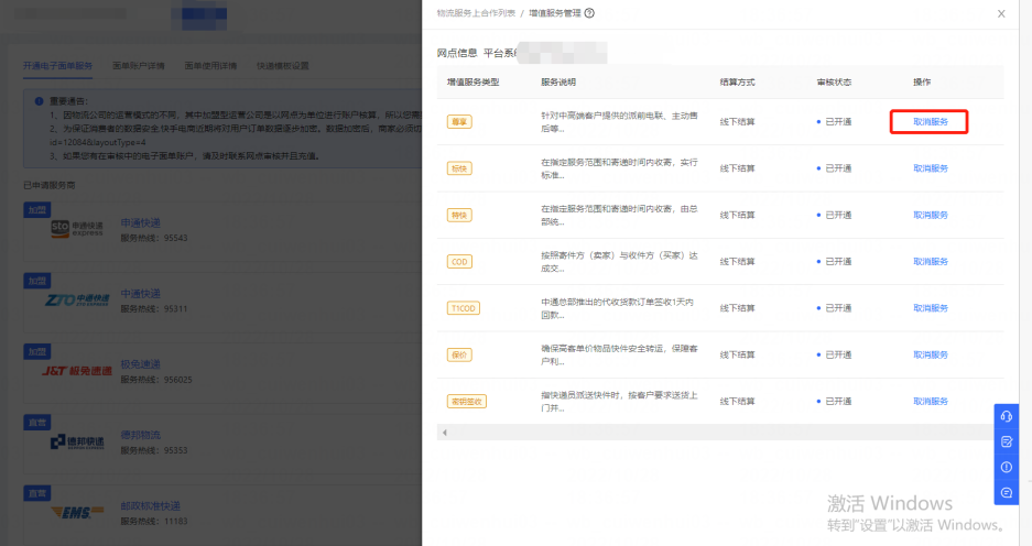 4?? 已開通的服務(wù)也可以點(diǎn)擊【取消服務(wù)】