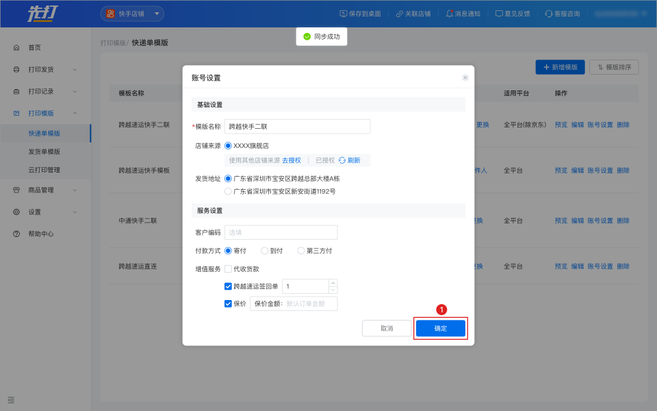 3?? 關(guān)聯(lián)店鋪后,登錄店鋪A的賬號(hào),也可選擇店鋪A的快遞模板打印發(fā)貨店鋪B的訂單,實(shí)現(xiàn)電子面單共享。