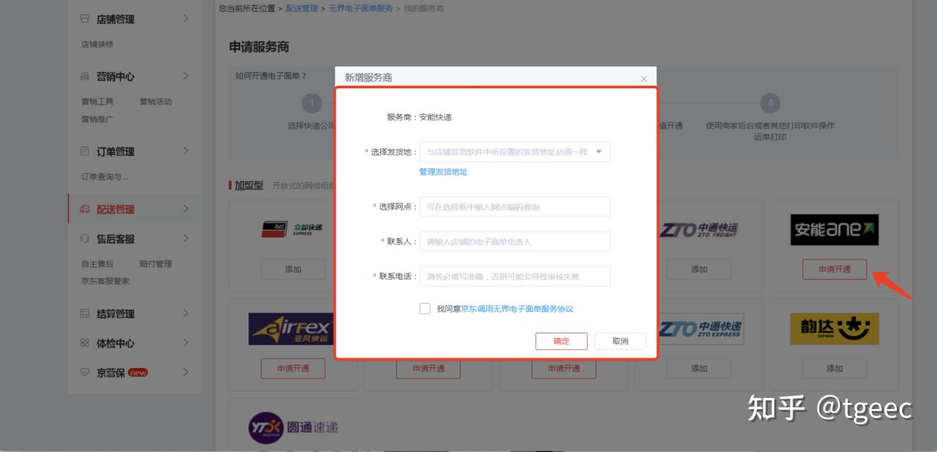 點(diǎn)擊訂單 ?? 電子面單 ?? 開通電子面單服務(wù) ?? 選擇快遞公司 ?? 新增網(wǎng)點(diǎn) ?? 填寫相關(guān)信息