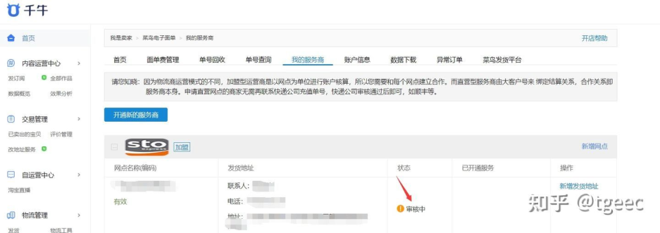 所有非菜鳥電子面單都需要切換,在 淘寶千牛后臺(tái) - 電子面單后臺(tái) 申請開通就可以 ,